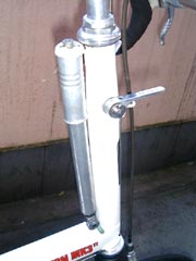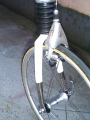 | フォークの肩を見ればワンオフ製作されているのがわかります。 ブレーキはカンパデルタ、 ハブはカンパ ユーラス、 |