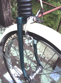 | スピードと同じようにバーが反転されたポジション、意外に乗りやすいですよ。 | 試乗した感じは、各部問題なくハイプレッシャータイヤの効果かかなり軽快に走ってくれます。このままポタリングなど楽しんで頂けると思います。 | シリーズ2はスタンドが標準装備なので重宝します。 少し大きめのリフレクターがちょっとかわいい、 |
