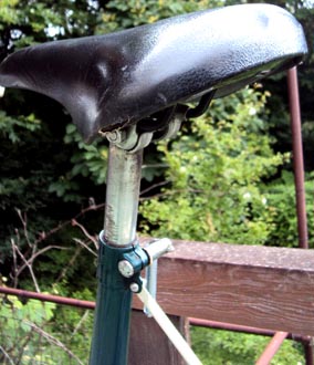 リアハブスターメイアーチャーFW4速のハブのメッキは良好です。リムはサイドに錆がありますが見苦しい程ではありません。 | サドル、ピラーは交換されています。 |