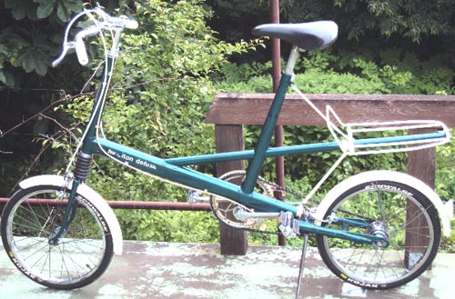 | 1966年のモールトンFフレームのデラックシリーズ2です。フレームの刻印は66年ですが、メインフレームは65年以前の形状です。古いモールトンではよくありますね。フレームの塗装はオリジナルで目立つ凹みや歪みはありませんが各所に錆や傷が点在しています。キャリアは補修塗装されています。また、泥よけは本来メッキですが、オフホワイトに塗装されています。部品は基本オリジナルですが、前オーナーはあちここち手を入れながら乗られてたようです。各部分解清掃、油脂類交換、調整済み、ブレーキインナーワイヤー、変則ワイヤー、チェーン、ブレーキゴム、ペダル、リアスプロケットは新品に交換してあります。タイヤはほぼ新品です。 このままポタリングやお買い物に出かけて頂けます。整備内容はブログをご覧下さい。 |