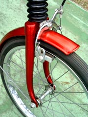 | 後ろブレーキのワイヤーは特殊で、これにより、ブレーキの効きが向上するそうです。 | ブルンメルのポンプも付属します。 |