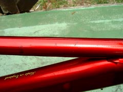 | ワイヤー類はリブ付きの黒、 | Fフォーク部、小さな傷あります。 | シートチューブに傷、デカール損傷があります。 |