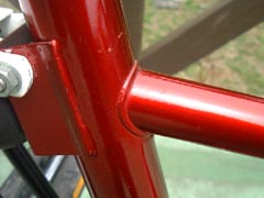 | リアフォークの下側ブリッヂ部分に薄い錆が出ています。 | オリジナルのシートですが、タグが紛失しています。 |