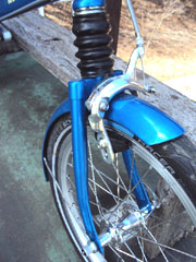 | ブレーキは、前後ともALHONGAのサイドプルデュアルポボット、 前のハブはSTS、リムはダブルウオールの16インチHE規格(外径は14WO規格とほぼ同じ)、タイヤはシュワルベ16 1.50 |