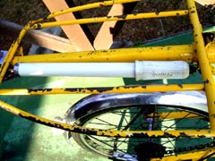 | オリジナルのポンプも付属します。 | サドルは、Lycettのレースタイプに交換されています。 | アルミのリアマッドガードは補修されています。 |