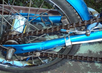 | クランク&チェーンリングのメッキもまずますです。ペダルは雰囲気の合う新品を使用しています。 BBはラレーではなくBSC/JIS企画ですから補修やモディファイも楽です。 |