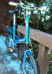 | 1967年頃のモールトンFフレームミニのスーパー4です。 塗装はオリジナルですが、あちこち傷があります。またリアのマッドガードは類似品に交換されています。その他部品はほぼオリジナルで、状態もよく全体にすっきりとしています。各部分解清掃、調整済み、ブレーキワイヤー、ペダルは新品に交換してあります。タイヤは少しヒビがありますがまだまだ大丈夫かと思います。このままお買い物やポタリング等楽しんで頂けます。整備内容はブログをごらん下さい。 |