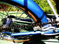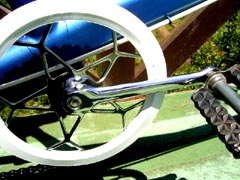 | GBステム&バーもきれいです。MMのベルも付属しています。 | クランク&チェンリングのメッキ良好、ペダルの状態も良好 | SA/FW 4速のハブ、リムのメッキ良好 ブレーキは、前後、GBスポーツMK3の青マークです。 |