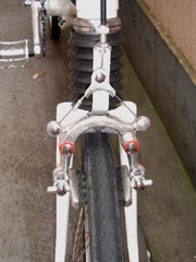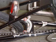 | リヤブレーキはワイヤーの取り回しをシンプルにしたかったのでこの位置にしました。 リフレクターはルーカス製 |