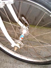 ハブはPelissier 2000 こんなメーカー知りません。 28穴とリヤのオーバーロックナットディメンジョン123mmということのみで選択 リムはモールトンです。 あえてラジアル組みにはしませんでした。 FフォークはS1の物を使用 |