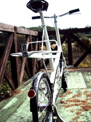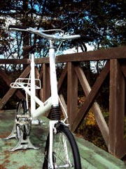 | ステム&バーは、GB製 | クランクTA、スペーサーウイリアムズ、リングはカンパ 50T、チグハグですが、遠目には、Sレンジと同じです。ペダルは、分割した時のことを考えて、MKSの取り外し可能なものにしましたが、使い勝手は正解。 | デュオマチックのハブは比較的きれいで、作動も良好です。 |